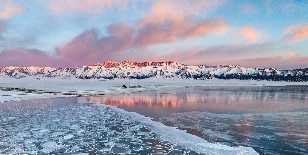 In the early morning, you may re-enter Sayram Lake at Qing Shui Bay, where the soft morning light casts a მშვიდ (calm) and ethereal glow over the frozen lake, offering another chance to soak in its serene and untouched beauty.